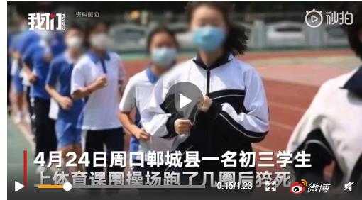 2020-05-08 09:31:23.0 https://www.green12306.com4月14日至30日,温州、周口、长沙先后发生中学生跑步猝死事件,有人认为猝死与戴口罩有关,因为运动时戴口罩会造成呼吸困难。近几日,多地发通知紧急叫停体育课戴口罩。5月6日海南省相关部门发通知称,学生睡觉时间不戴口罩。